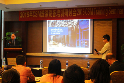 本次培訓(xùn)邀請了全球行業(yè)領(lǐng)導(dǎo)品牌做產(chǎn)品及最新技術(shù)的培訓(xùn),并與參會嘉賓進(jìn)行熱烈探討。培訓(xùn)也受到了中施領(lǐng)導(dǎo)的高度重視,中施副總裁施展庭先生、董事Russ Poy先生、董事總經(jīng)理劉冠華先生都親臨現(xiàn)場與參會嘉賓進(jìn)行交流。首先,中施董事總經(jīng)理劉冠華致歡迎詞,他感謝了大家的光臨,并表示中施將不斷致力于設(shè)備研發(fā)和技術(shù)創(chuàng)新,引進(jìn)全球最先進(jìn)的技術(shù)成果和品牌,為洗滌行業(yè)的發(fā)展貢獻(xiàn)力量。