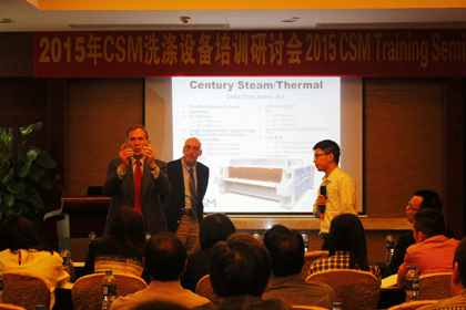 美國Milnor“美羅”亞洲常務(wù)董事及中施董事Russ Poy先生就美國Milnor水洗設(shè)備及現(xiàn)代化中央洗衣廠做系統(tǒng)介紹。
